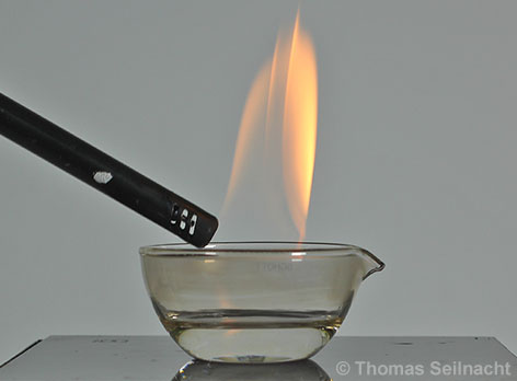 kann daher bei Raumtemperatur mit einer Flamme als Zündquelle