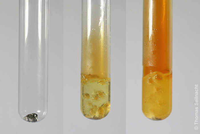 Schutzschicht durch Anschleifen, zersetzt es sich mit verdünnter Salzsäure oder Schwefelsäure unter Wasserstoff-Entwicklung.