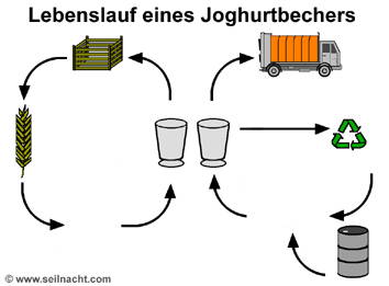 den Grundsatz eines geschlossenen Stoffkreislaufes. Bei der Einwegproduktion wird ein Verpackungsprodukt nur einmal verwendet und dann auf einer