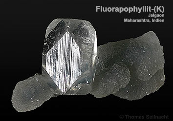 Fluorapophyllit-(K) mit dipyramidalem Habitus aus Maharashtra in Indien