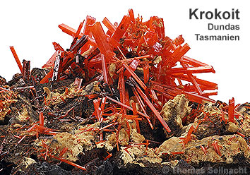 Der Krokoit ist ein stark toxisches und krebserzeugendes Mineral von hoher Dichte, das aus Bleichromat aufgebaut ist und gerne rote, langprismatische Kristalle ausbildet. Das Mineral ist in heißer Salzsäure und in Salpetersäure löslich. Es schmilzt vor dem Lötrohr und bildet unter Knistern ein dunkles Bleikorn.