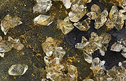 Calcit in langgezogenen Doppelendern. Der Amethyst vom Mörchnerkar bildet Zepter, Fensterquarz oder treppenartige Aggregate. Am Mörchnerkar gibt es auch