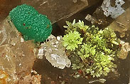 Zinkolivenit. Die beiden smaragdgrünen Minerale