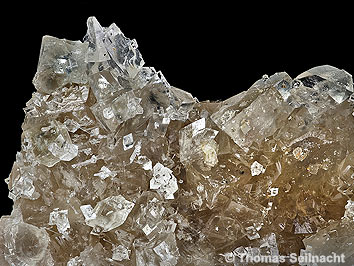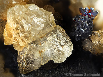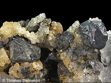 Im Türkschacht bei Zschorlau im Revier Schneeberg sind die pseudokubischen Argentite meist mit Calcit vergesellschaftet (Bilder S8 und S9). Bei den kleineren, spitzpyramidalen, rötlich durchscheinenden Kristallen handelt es sich um Proustit (Bild S7). Alle drei Fotos stammen vom gleichen Stück aus der ehemaligen Sammlung Wolfgang Intra.