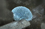 Jeremejewit gefunden. Das harte Aluminiumborat bildet – meist nur mikroskopische kleine – blaue bis fast farblose Kristallbüschel. Der