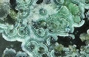 Zinkolivenit. Ähnliche krustige Überzüge und Kristalle kommen auch beim