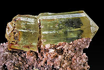 Vesuvianit bildet deutliche ausgebildete, tetragonale Prismen oder Dipyramiden, während der
