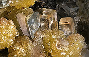Der gelbe und transparente Fluor-Apatit stammt direkt vom Stadtrand der Großstadt Durango. Bekannt ist er auch als „Durango-Apatit“, die langprismatischen Kristalle erreichen bis zu fünf oder sechs Zentimeter Länge. Der Hügel