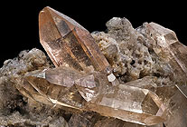 Tepetate im Bundesstaat San Luis Potosí. Dieser Ort liegt ungefähr 35 Kilometer südwestlich der Stadt San Luis Potosí. Der Topas tritt dort säulig bis spitzpyramidal auf. Die Kristalle sitzen