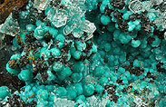 Cerussit von dort bildet ganze Rasen mit Kristallen. Die Kristallrasen mit grasgrünem
