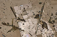 Quecksilber gediegen kommt in kleinen, silbrig glänzenden Tropfen vor.