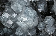 Calcit tritt in schönen Skalenoedern auf. Der weiße, kugelig-nierige