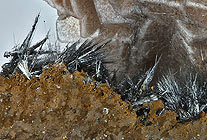 Quarz aus Serifos kann auch rosa oder rötlich gefärbt sein. An der Schlackenfundstelle bei Avissalos kommen die typischen Sekundärminerale des Kupferbergbaus vor. Sehr fotogen sind die Stüfchen für den Micromounter, bei denen türkisblauer, nadeliger